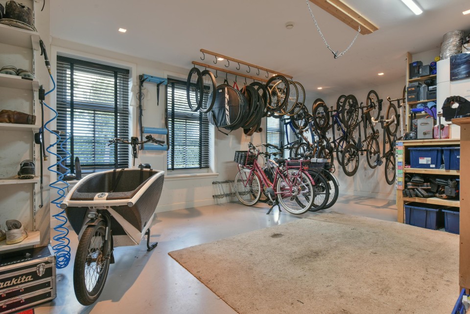 Voorzien van een antraciet tegelvloer met vloerverwarming, elektrisch bedienbare roldeur, een uitstortgootsteen. Vaste trap naar de bergzolder.