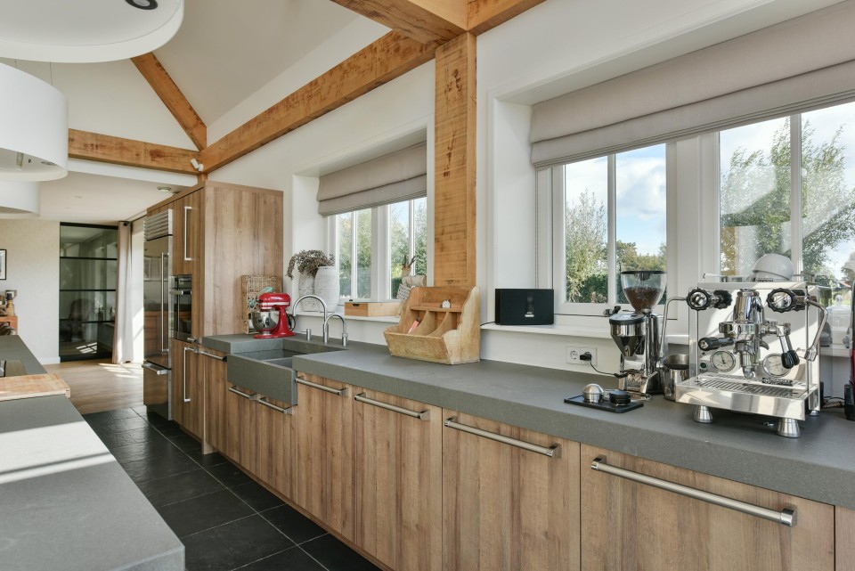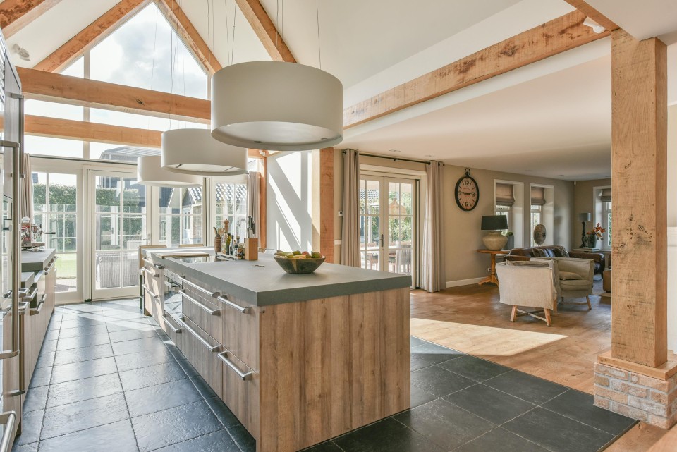 Vanuit deze woonkeuken is een prachtig vergezicht over de landerijen.