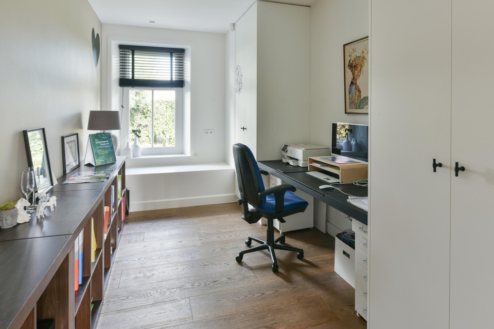 Op de begane grond bevinden zich naast de woonkeuken verder 2 kantoor-/werkkamers. Alsmede een grote hobbyruimte met buitendeur naar de eigen oprit aan de voorzijde.
