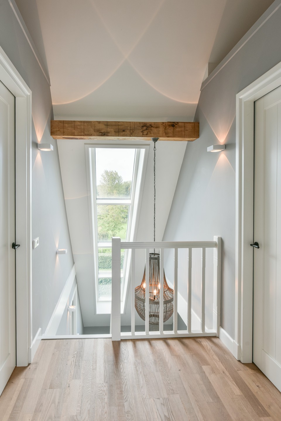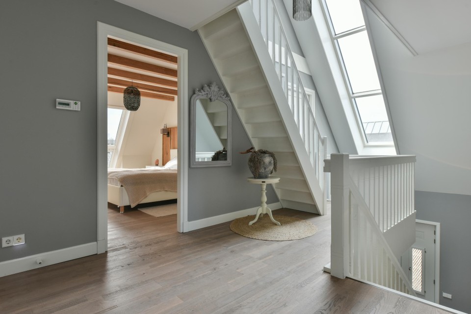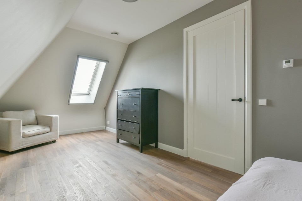 Op de eerste verdieping treft u aan de ruime en lichte overloop voorzien van een grote raampartij en een eiken vloer over de gehele verdieping. Hier is een apart 2e toilet.