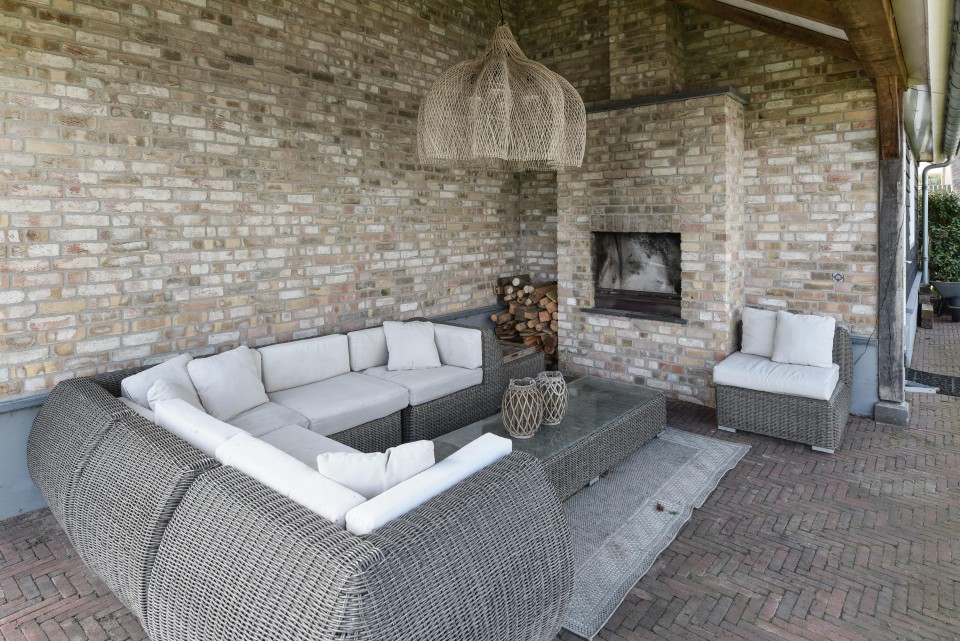 Naast het gebouw is een overdekt terras met een buiten openhaard waar u zomer en winter heerlijk kunt genieten van de natuur.