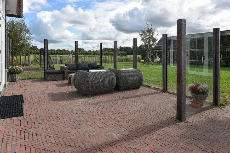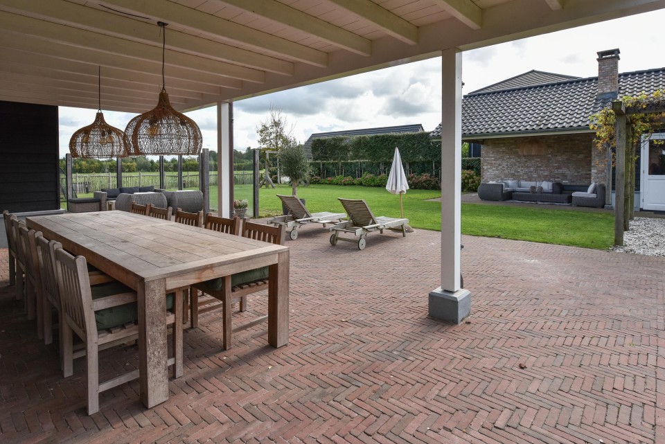 Met een royaal perceel van 1.735 m² biedt de tuin volop ruimte voor ontspanning en buitenleven met prachtig uitzicht over het weidelandschap.