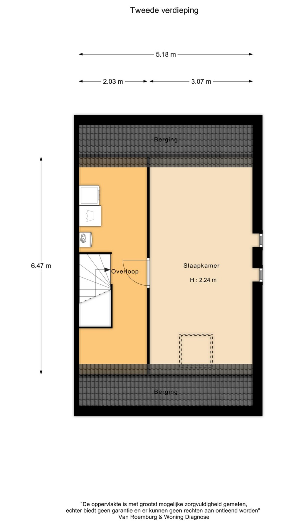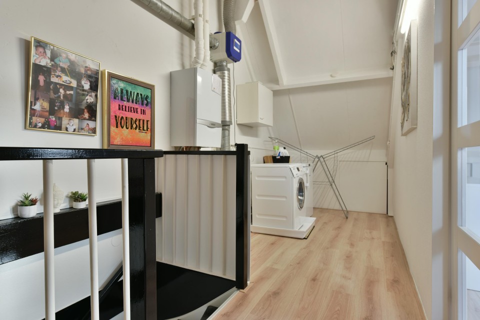 Via vaste trap naar de ruime voorzolder, CV-hoek voor de Vaillant combi ketel bouwjaar 2016 met onderhoud-abonnement.
