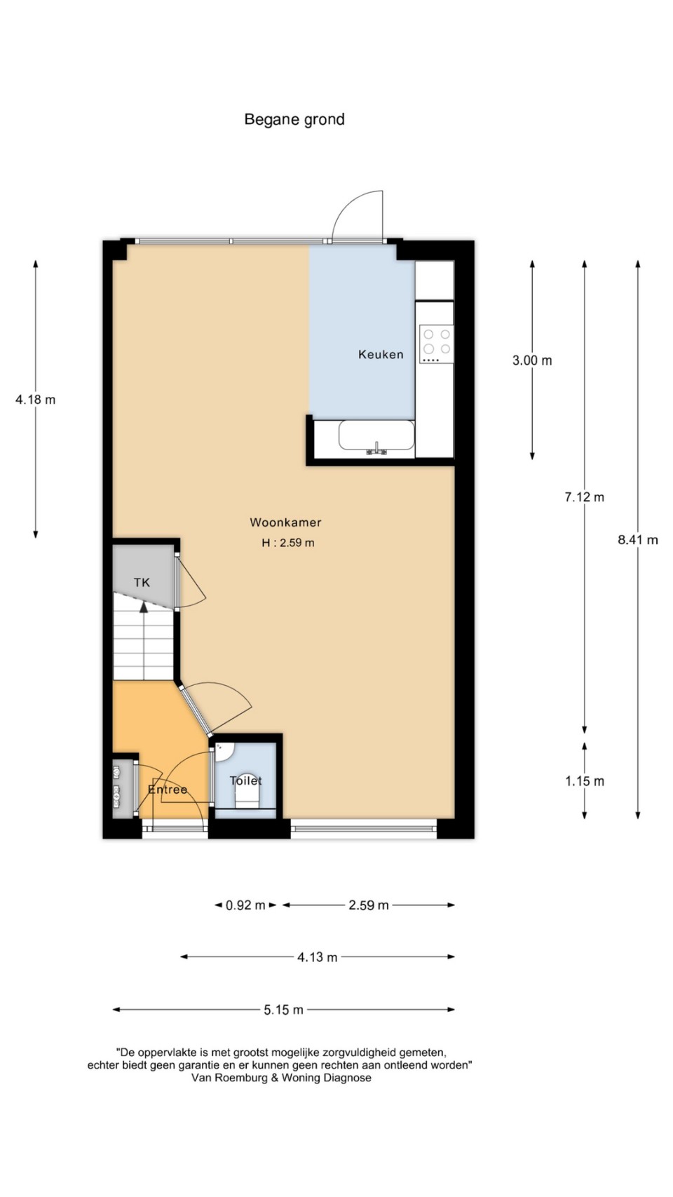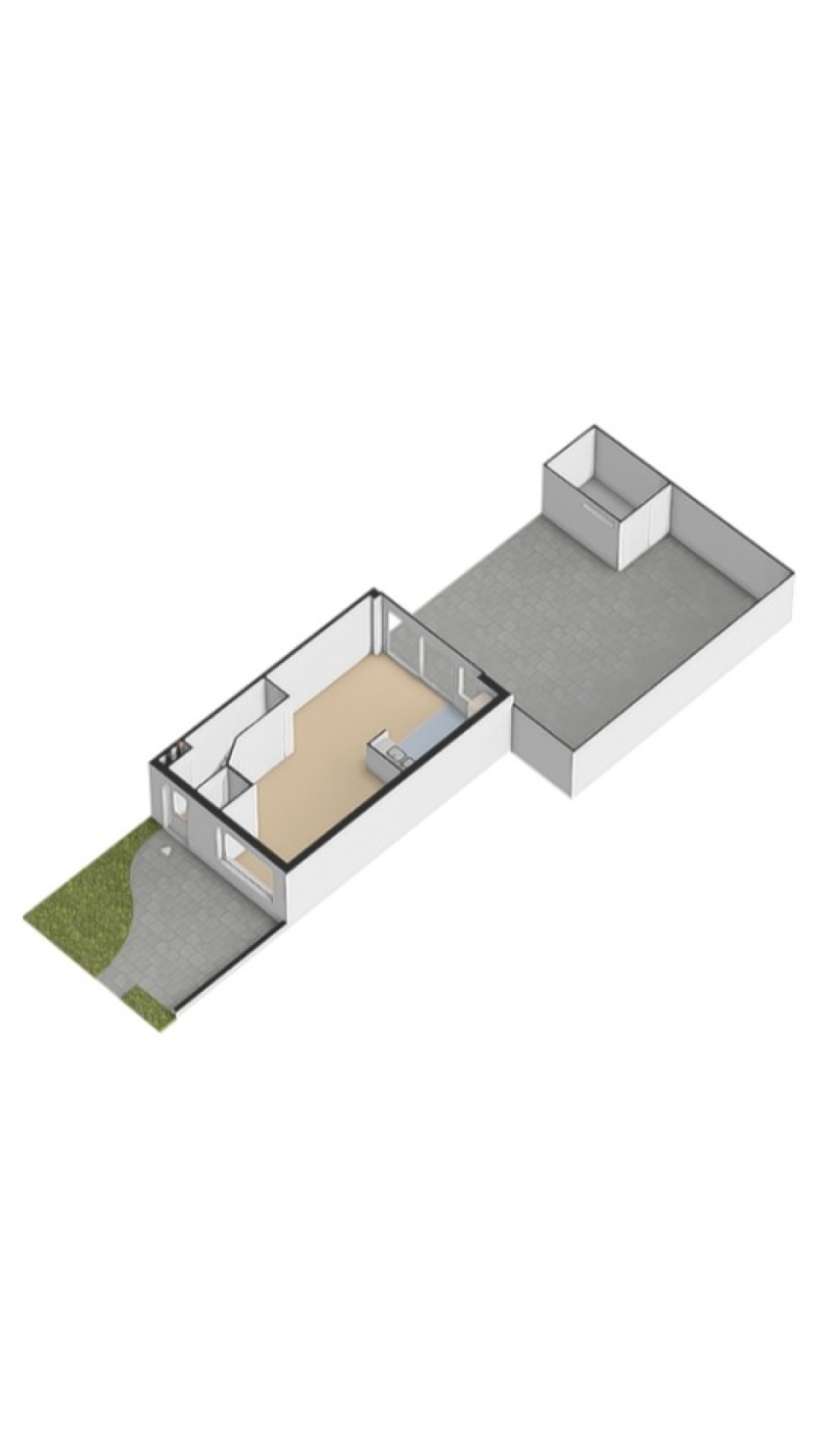 De keuken beschikt over voldoende kastruimte. Een loopdeur naar de flinke achtertuin en een achterom is aanwezig.