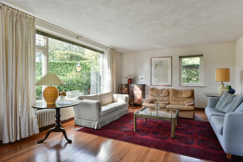 Vanuit deze living met grote raampartijen is er een prachtig vrij uitzicht over de tuin
