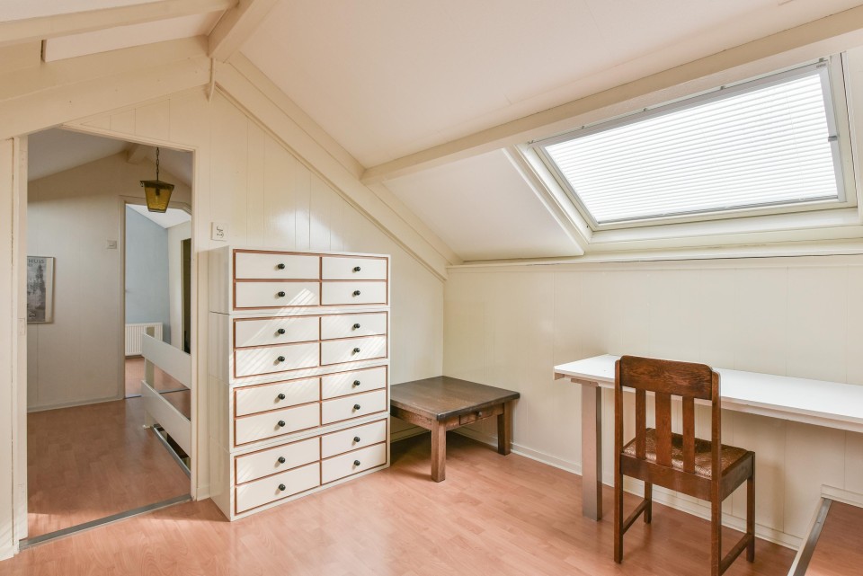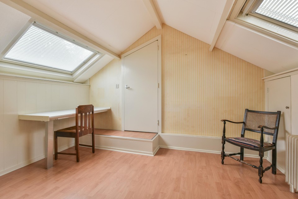 1 slaapkamer aan de achterzijde voorzien van een Velux-dakraam en een raam in de kopgevel.