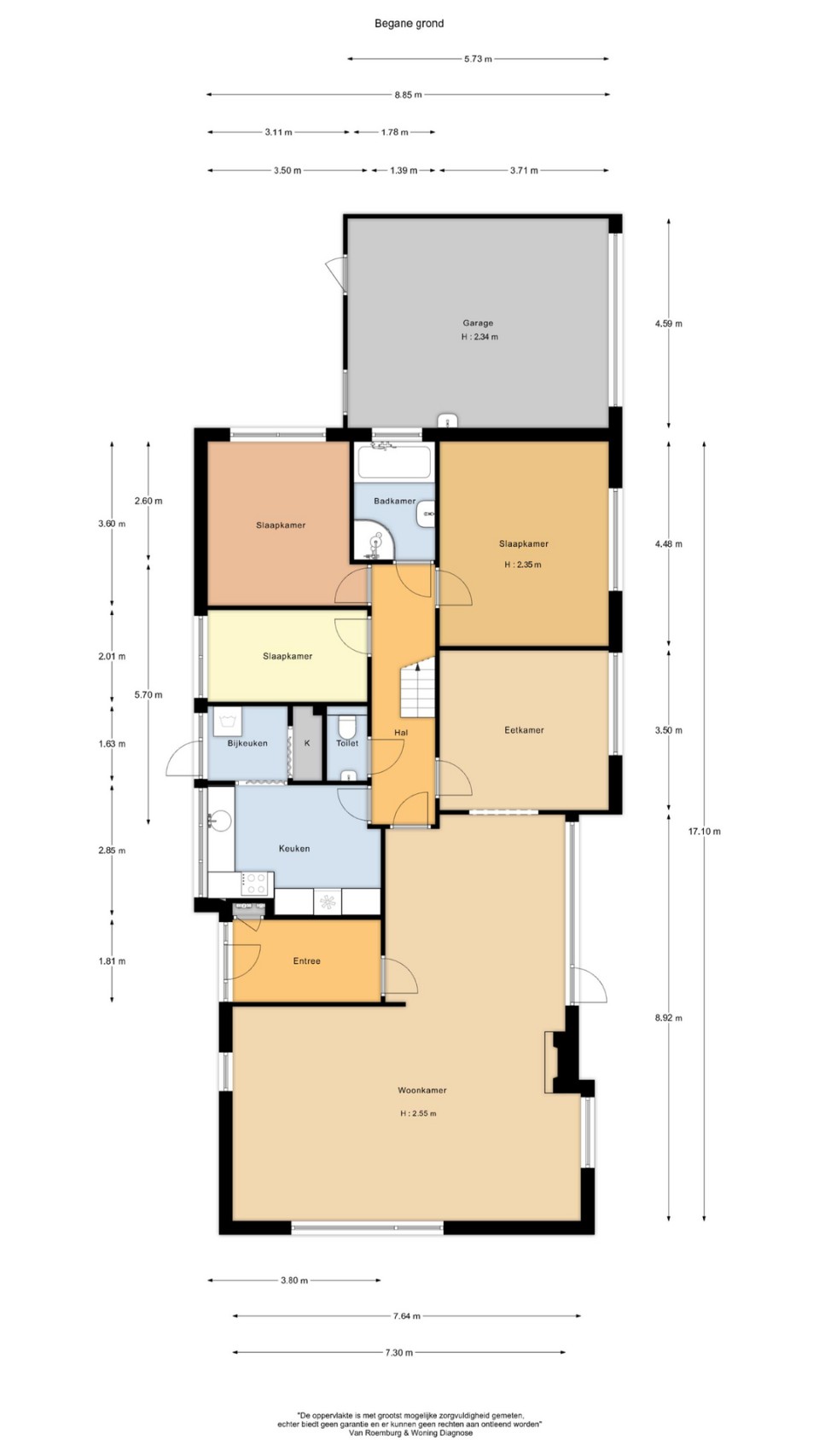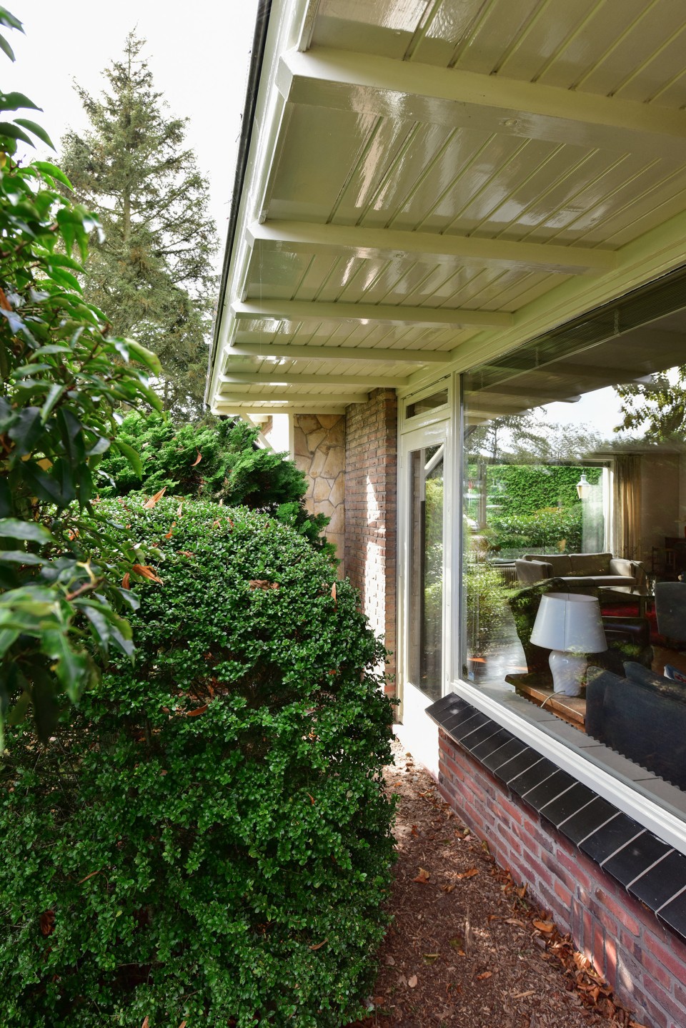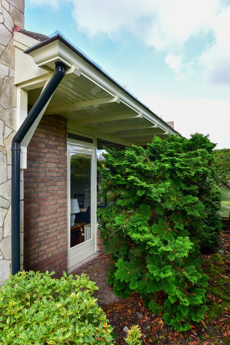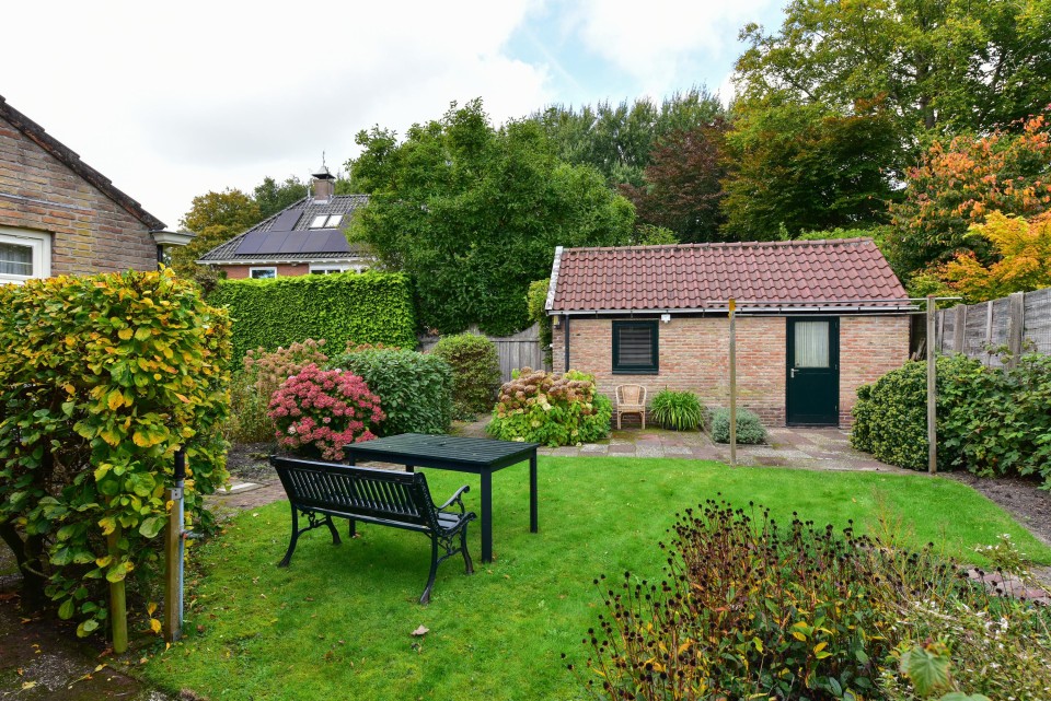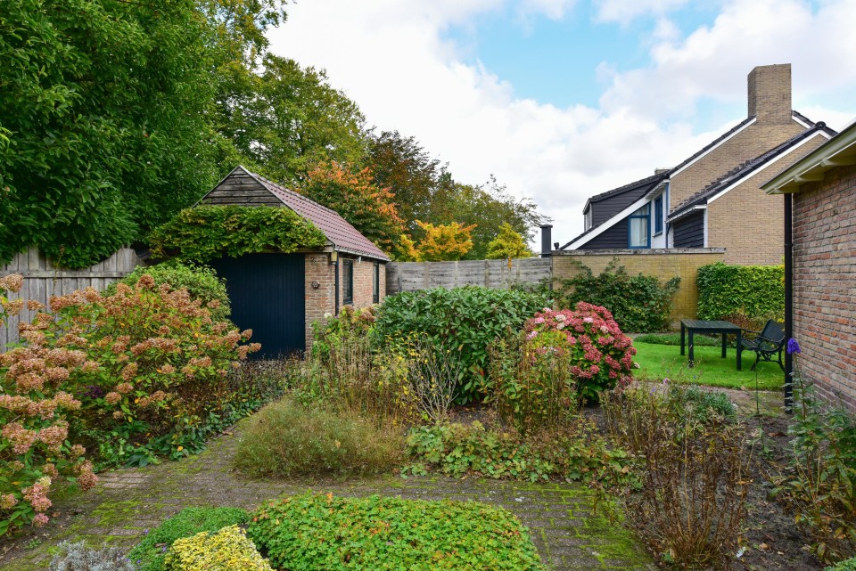 De aangebouwde garage is voorzien van een zolderberging en een elektrisch bedienbare deur.