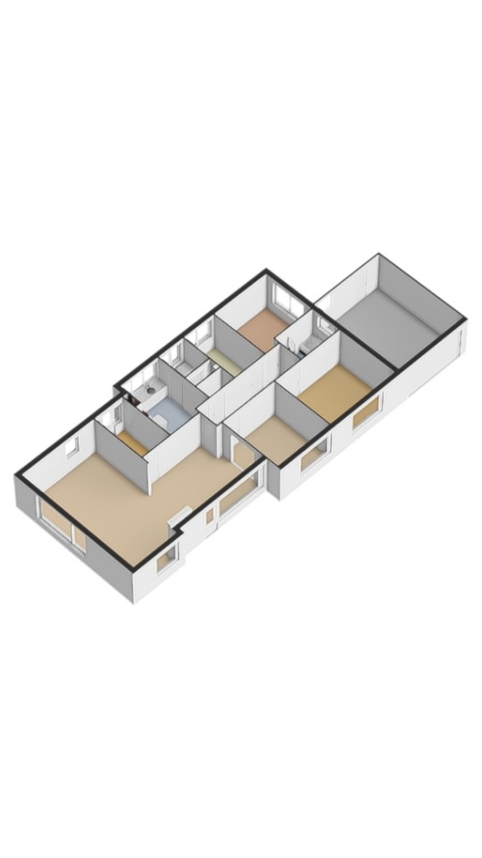 De L-woonkamer + eetkamer zijn tezamen groot ± 60 m2.