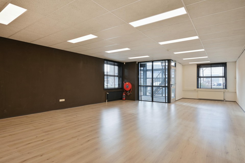 Hier is een grote kantoor-/werkruimte met een separate kantoorkamer aan de voorzijde.
