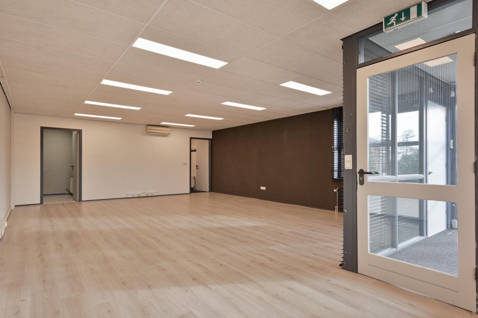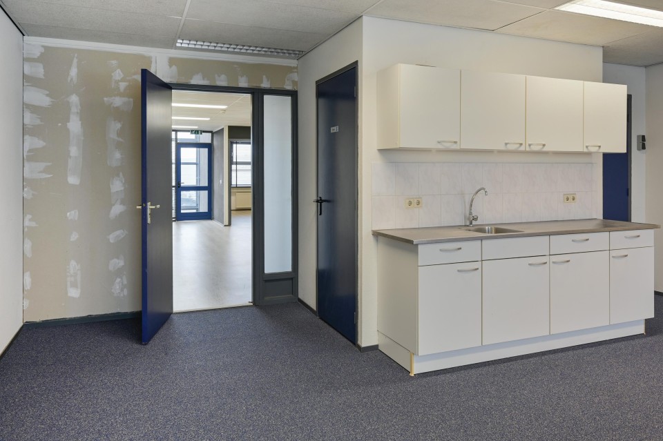 Via een toegangsdeur is de kantoor-/werkkamer bereikbaar welke aan de achterzijde is gelegen en is voorzien van een kitchenette.