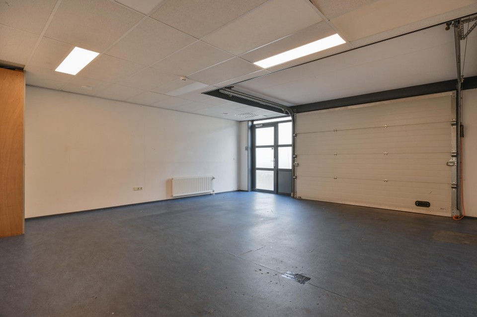 De bedrijfsruimte aan de achterzijde is voorzien van een overheaddeur met de afmetingen van hoog --> (inrijhoogte) 245 cm en breed --> 350 cm.
