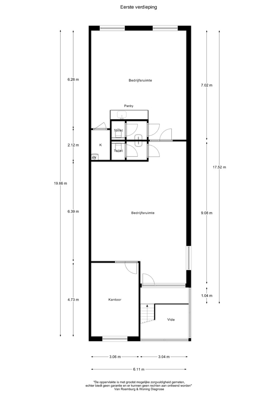 Aangrenzend is de achtergelegen bedrijfsruimte voorzien van een dames- en herentoilet.