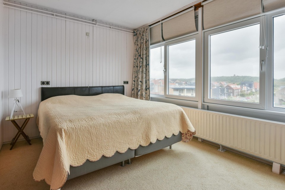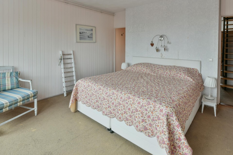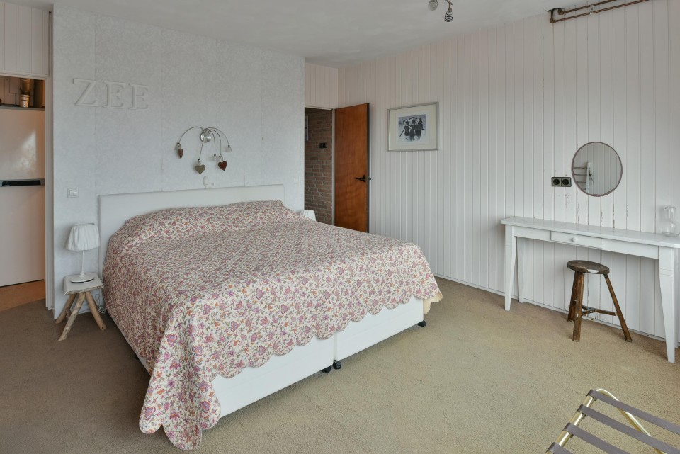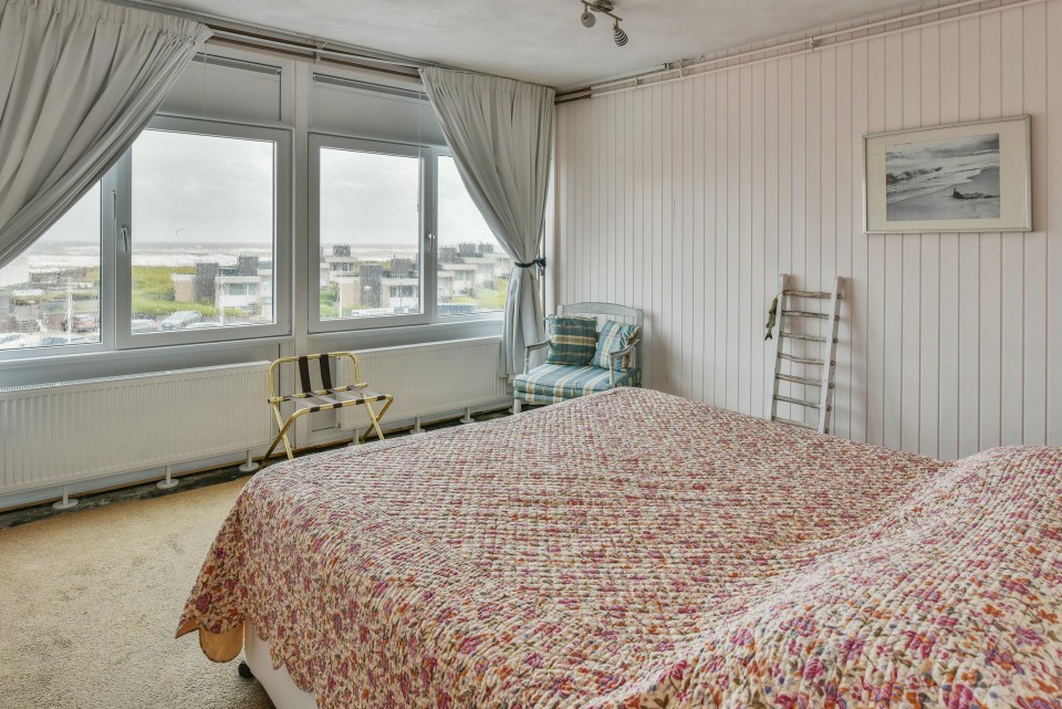 Eén slaapkamer aan de voorzijde met wederom een prachtig, vrij uitzicht over de Noordzee.