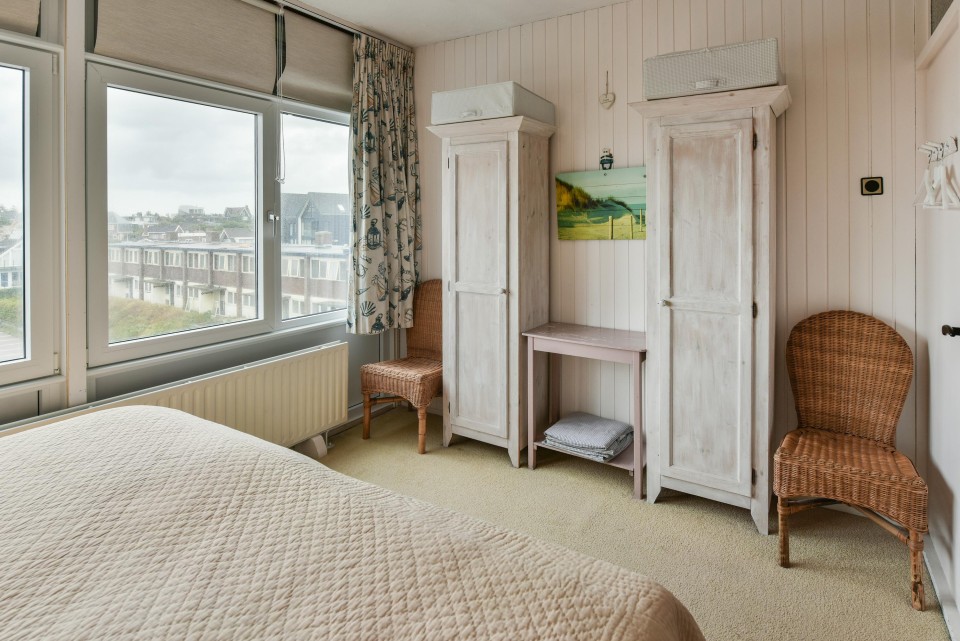 Deze slaapkamer heeft een mooi, vrij uitzicht over het dorp en het duinlandschap.