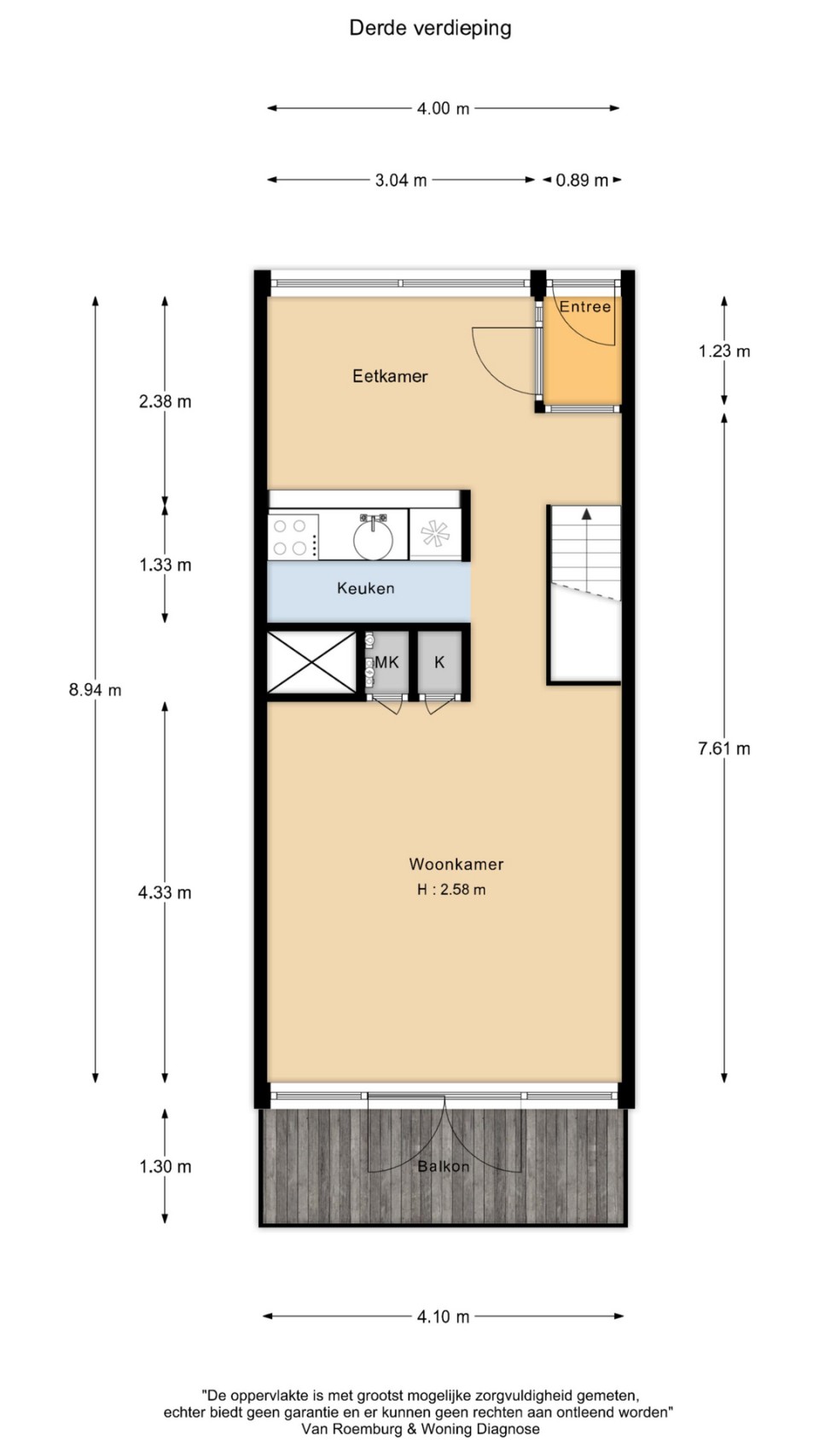 In de binnenhal bevinden zich een toilet en twee vaste kasten.